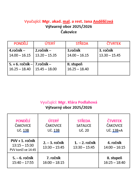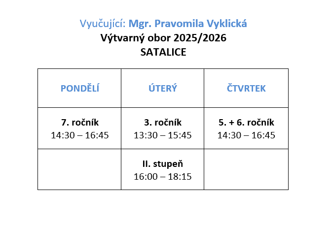vyučuje: MgA. Zdenka Fleglová – učebna č. 24 – zadní vchod – patro pondělí 14.00 – 19.00